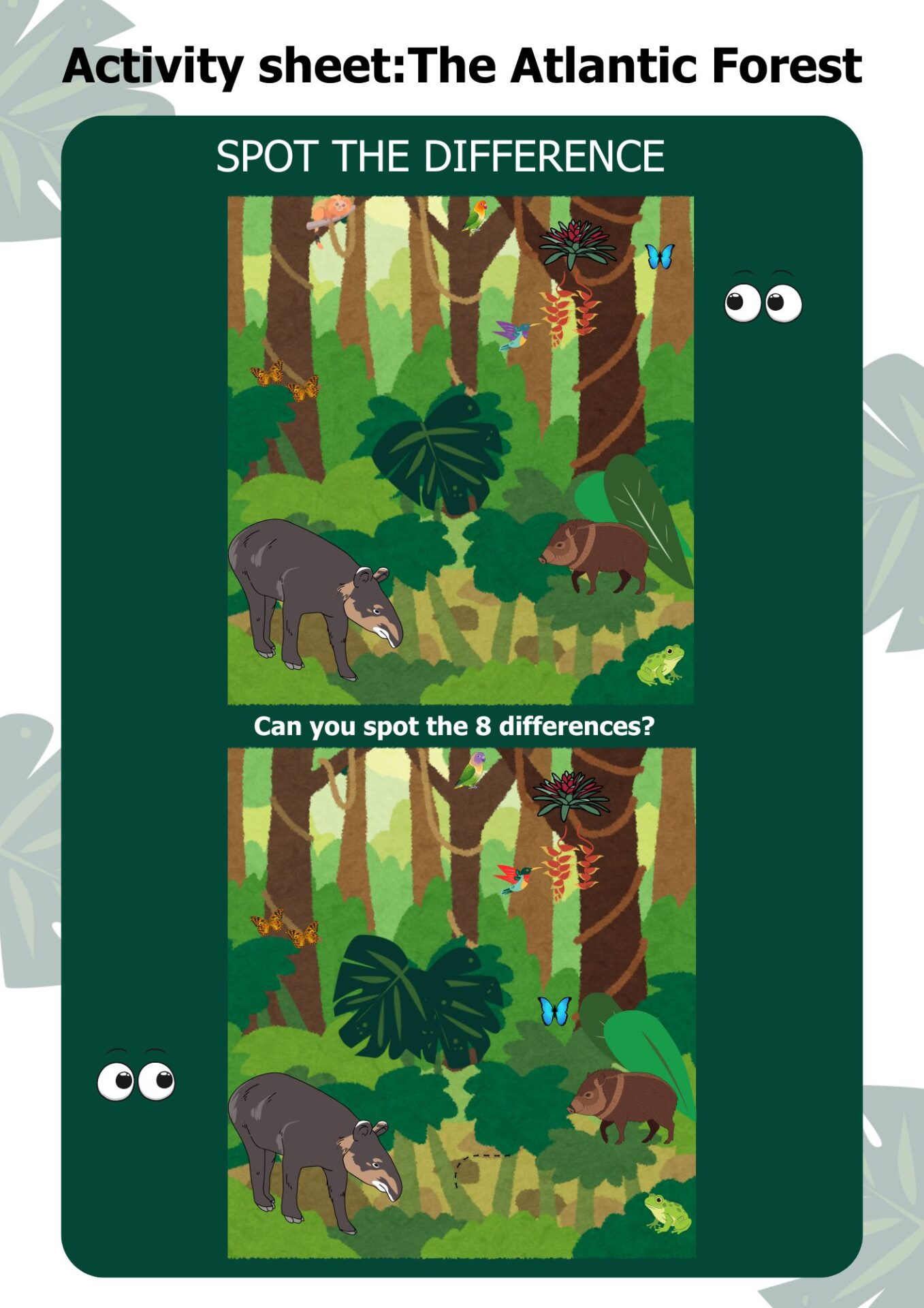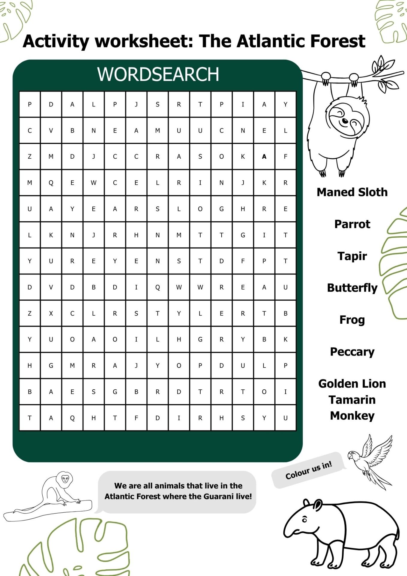 Enjoy wordsearches or spot the difference? Why not try this activity sheet based on animals that live in the Atlantic Forest, home to the Guarani.